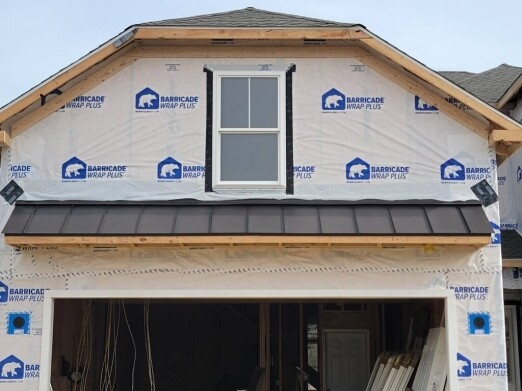 This project was completed in Hopewell, NJ, and it involved the installation of a metal canopy over a residential garage. The client requested a reliable, durable, and visually appealing solution that would protect the driveway area from rain and snow while complementing the home’s overall exterior design. For this purpose, an aluminum standing seam metal roof system was chosen — a material known for its strength, corrosion resistance, and modern appearance.