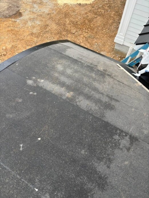 We carefully removed the existing shingles, cleaned the roof of the remnants of roofing materials, and checked the integrity of the substrate. A special self-adhesive membrane was applied to the OSB (plywood/chipboard) boards, and the surface was completely sealed, including the fireplaces and joints.