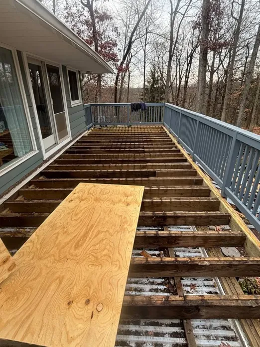 This project was completed at a residential property in Titusville, NJ. The homeowner wanted to fully renovate an old balcony with worn-out wooden planks and install a modern waterproof deck surface. The main goal was to ensure long-term durability and create a reliable waterproof balcony deck capable of withstanding local weather conditions while protecting the structure from moisture.